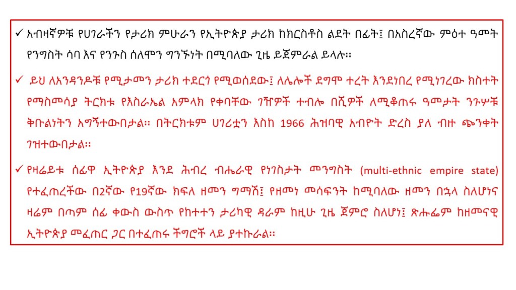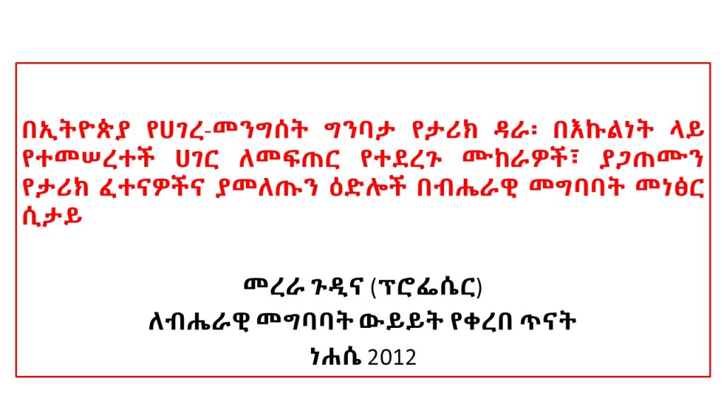 በኢትዮጵያ የሀገረ-መንግሰት ግንባታ የታሪክ ዳራ በእኩልነት ላይ የተመሠረተች ሀገር ለመፍጠር የተደረጉ ሙከራዎች ያጋጠሙን የታሪክ ፈተናዎችና ያመለጡን ዕድሎች በብሔራዊ መግባባት መነፅር ሲታይ