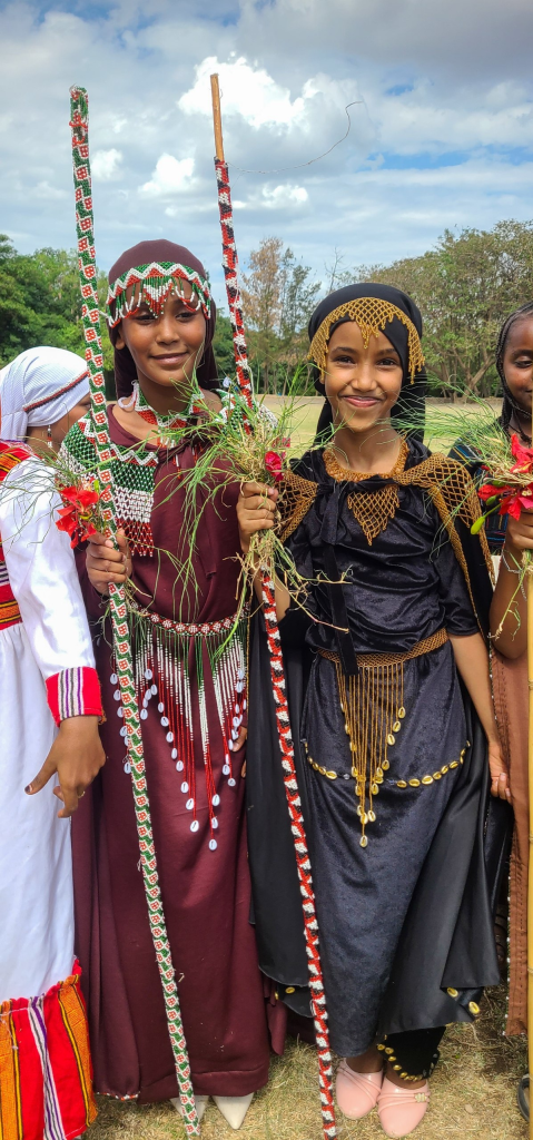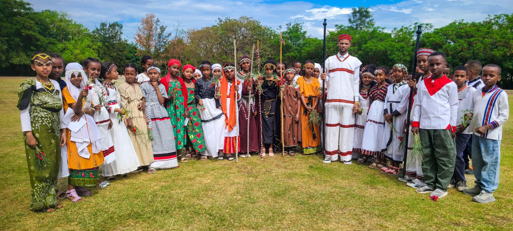 In a heartwarming cultural demonstration, young students proudly showcase the traditions of Oromo thanksgiving.