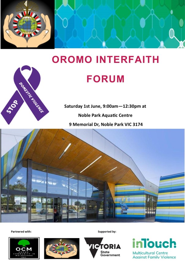 OromoInterfaithForum-This faith-based activity is designed for examining the ways in which Oromo faiths leaders currently respond to family violence in their setting. We have discussed and agreed to conduct two Forums in the community during the year.