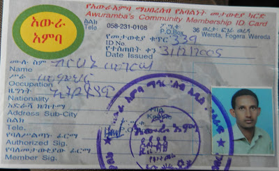 I received my membership ID (indicator of myself identification with the group) from Awuramba community on 9th of August 2013. It took me only half a day to accept their beautiful basic philosophies and make them my identity. I guess it was also enough time for them to judge and admit me to their community and philosophy. I am now the member of the community, I have identification card, my pictures is posted in the secretariat office and basic Awuramba philosophy is on my mind. I get a book called “the journey for peace” which teach about the history and basic philosophies of the community. I also have Awuramba made scarf on my neck.